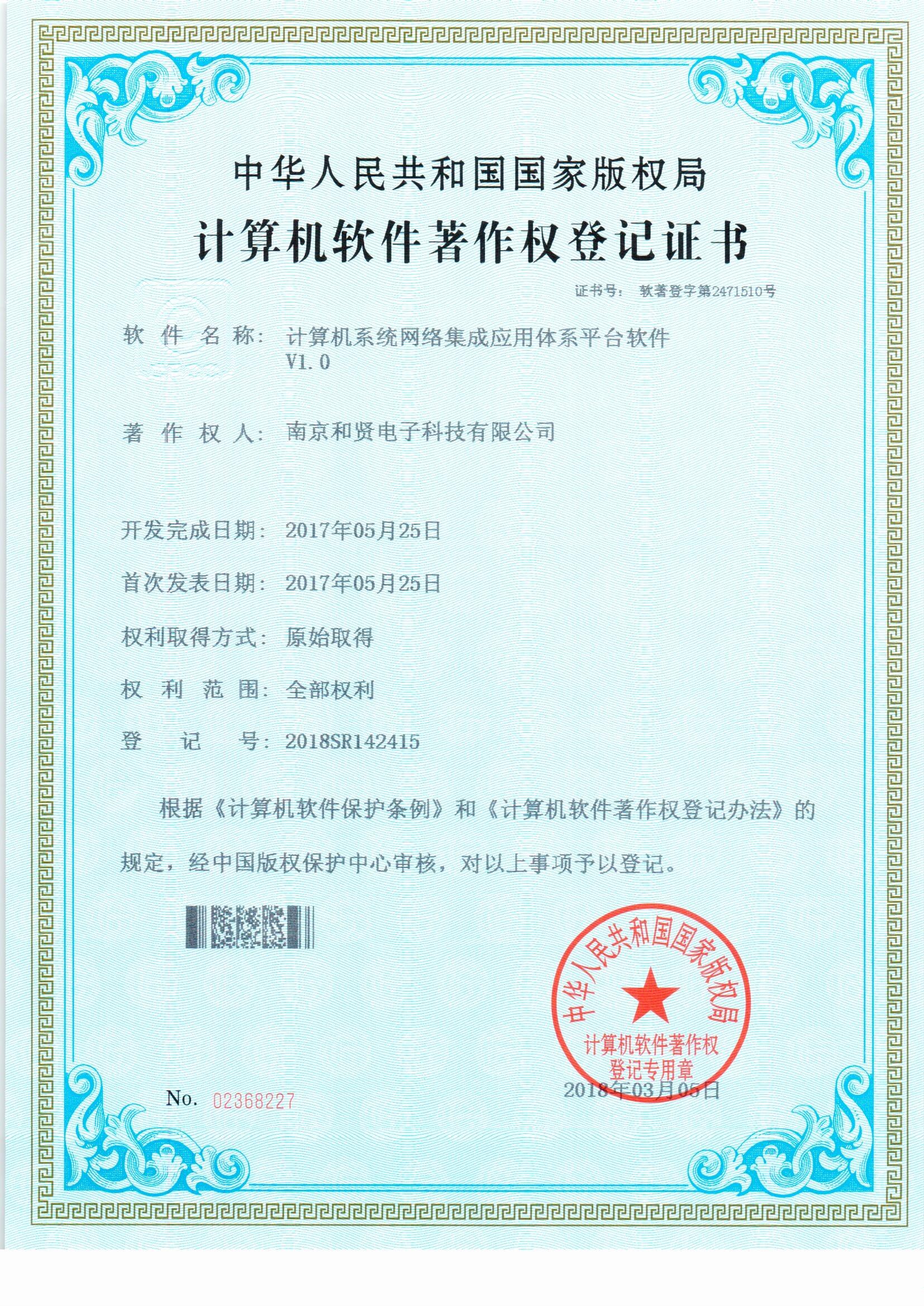 计算机信息系统集成及服务叁级资质 2017年3月